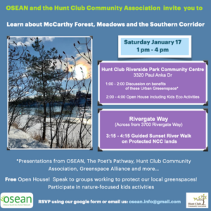 Join OSEAN, the Hunt Club Community Association and friends on another magical walk on January 17th AND participate in our discussion and open house.